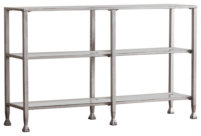 Contemporary accent table has metal features and sleek lines ; Convenience concepts, inc midnight classic glass three tier end table: 3 black tempered glass shelves 3 spacious tempered glass shelves. 2 out of 5 stars with 1 ratings.